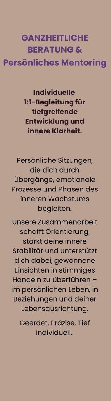 Individuelle 1:1-Begleitung für tiefgreifende Entwicklung und innere Klarheit.