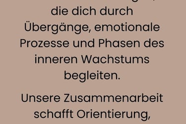 Persönliche Sitzungen, die dich durch Übergänge, emotionale Prozesse und Phasen des inneren Wachstums begleiten.